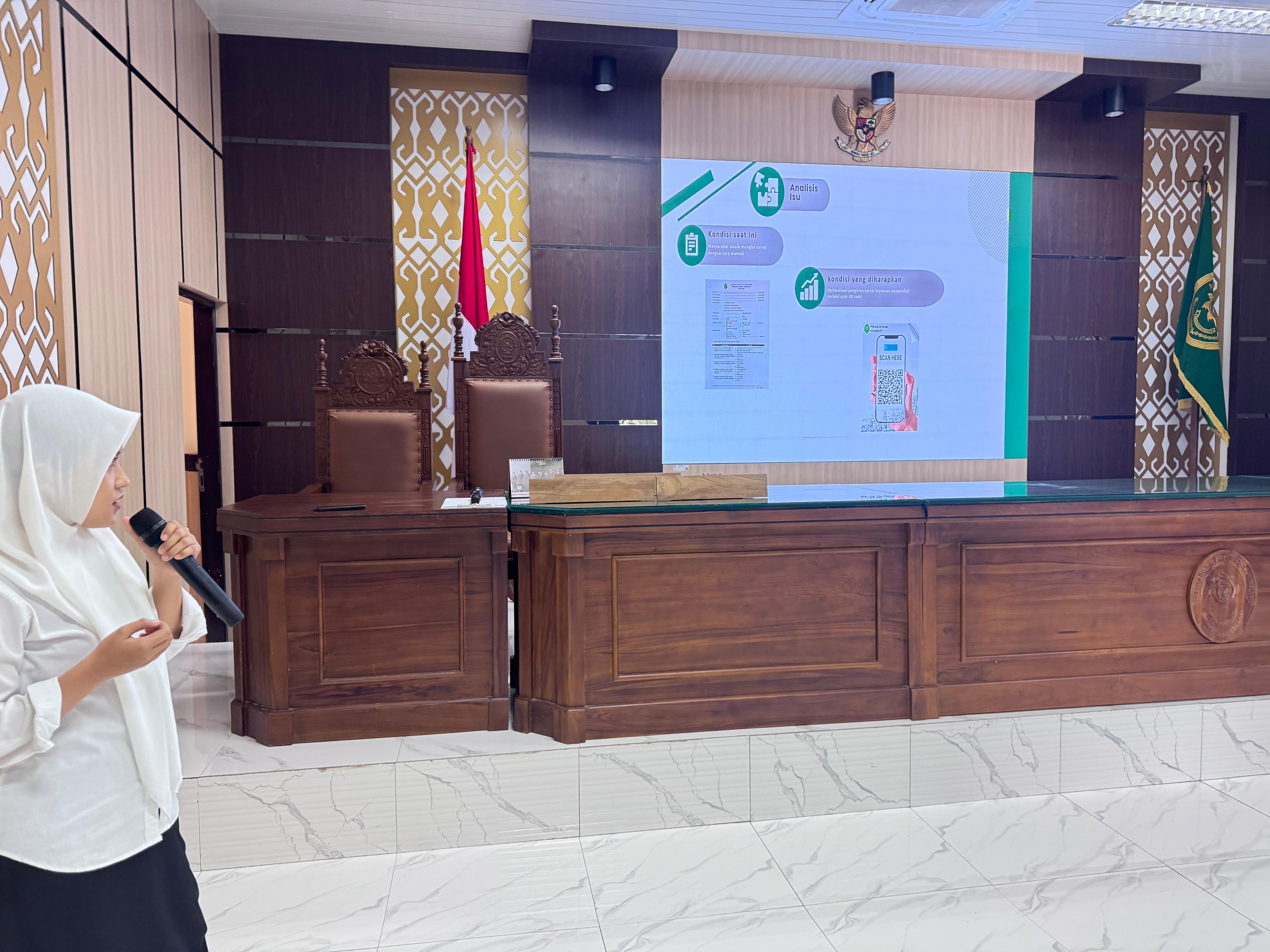 Presentasi dilaksanakan di ruang sidang utama PA Pasangkayu dengan dihadiri oleh Ketua PA Pasangkayu Ibu Mazidah, S.Ag., M.H., Wakil Ketua Abu Rahman Baba, S.H.I., M.H, Hakim., Panitera dan seluruh Aparatur peradilan PA Pasangkayu. Masing-masing CPNS mempresentasikan hasil aktualisasi mereka di hadapan seluruh Aparatur Pengadilan Agama Pasangkayu.Tak lupa dalam kesempatan tersebut, para peserta sosialisasi memberikan masukan demi kesempurnaan aktualisasi yang telah dibuat.