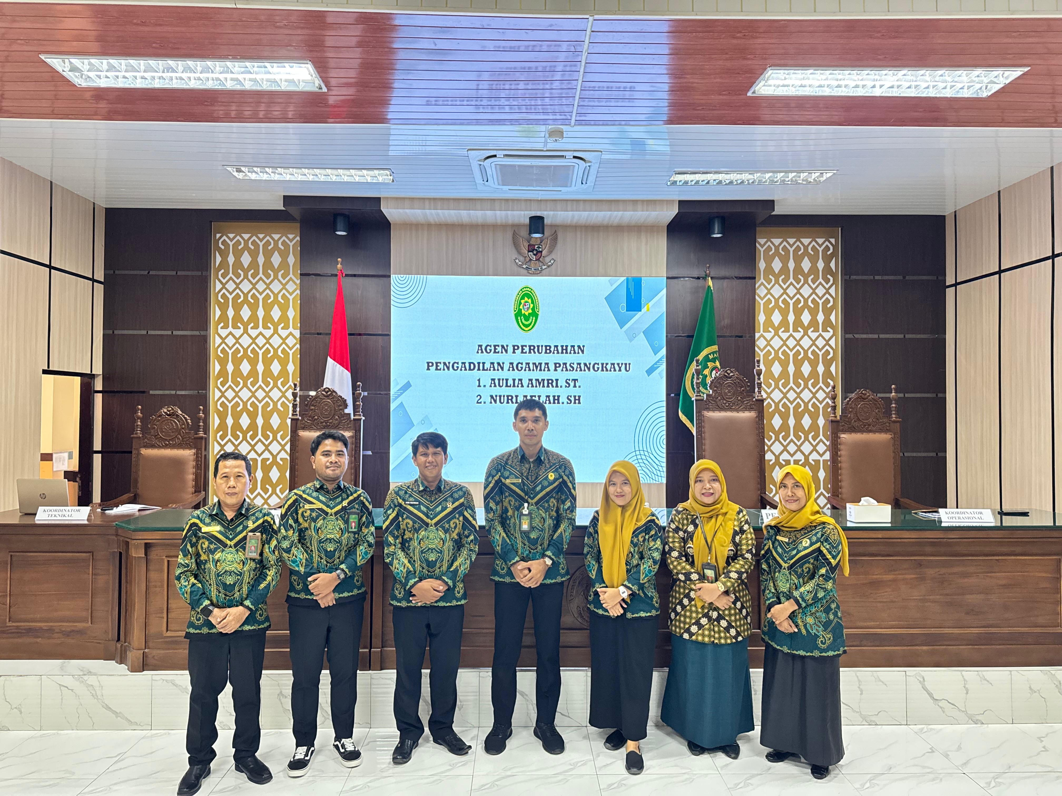 Pengadilan Agama Pasangkayu menggelar kegiatan Pemilihan Agen Perubahan Tahun 2026 sebagai bagian dari upaya memperkuat pembangunan Zona Integritas dan mewujudkan budaya kerja yang berintegritas, profesional, dan berorientasi pada pelayanan publik, di lingkungan Pengadilan Agama Pasangkayu.