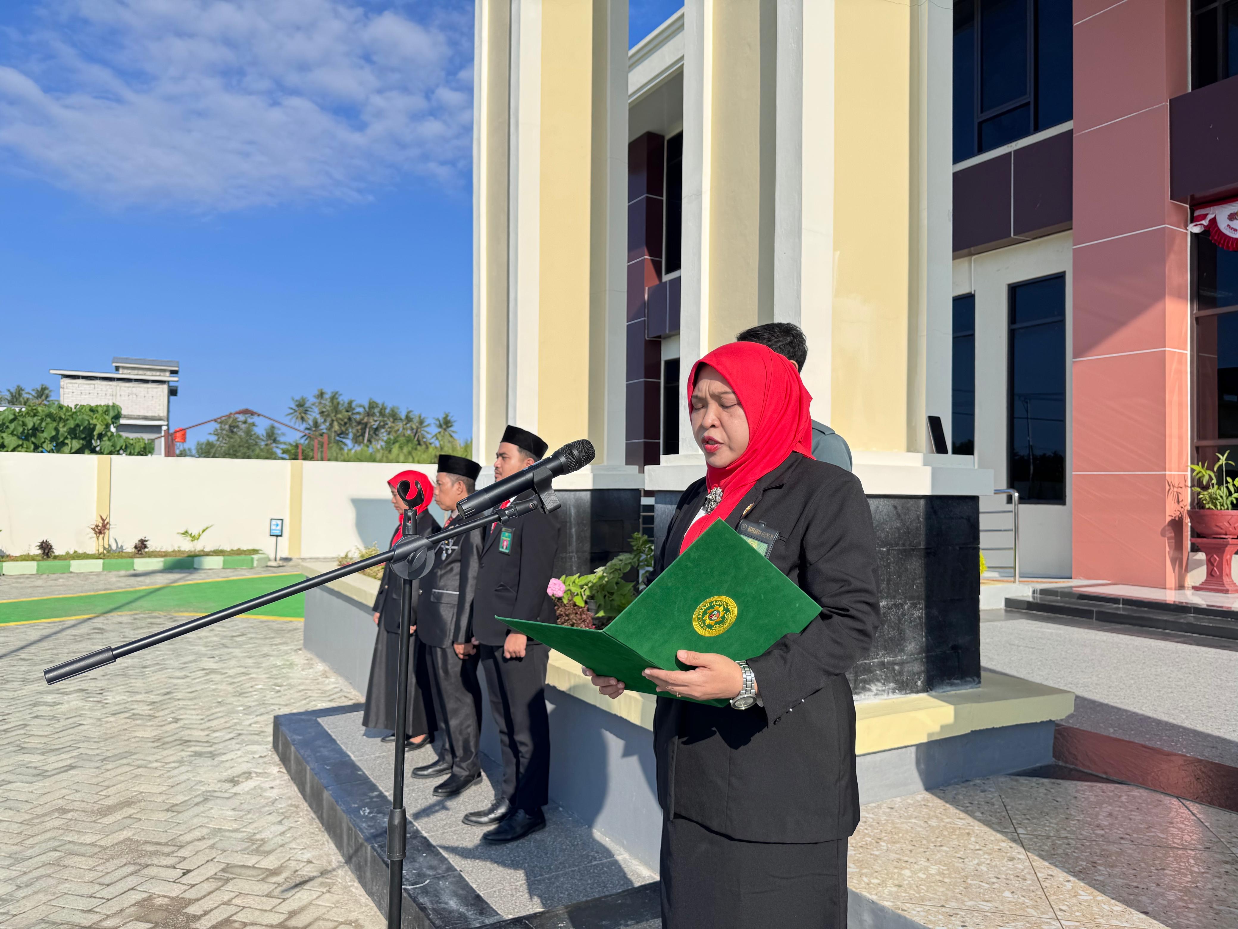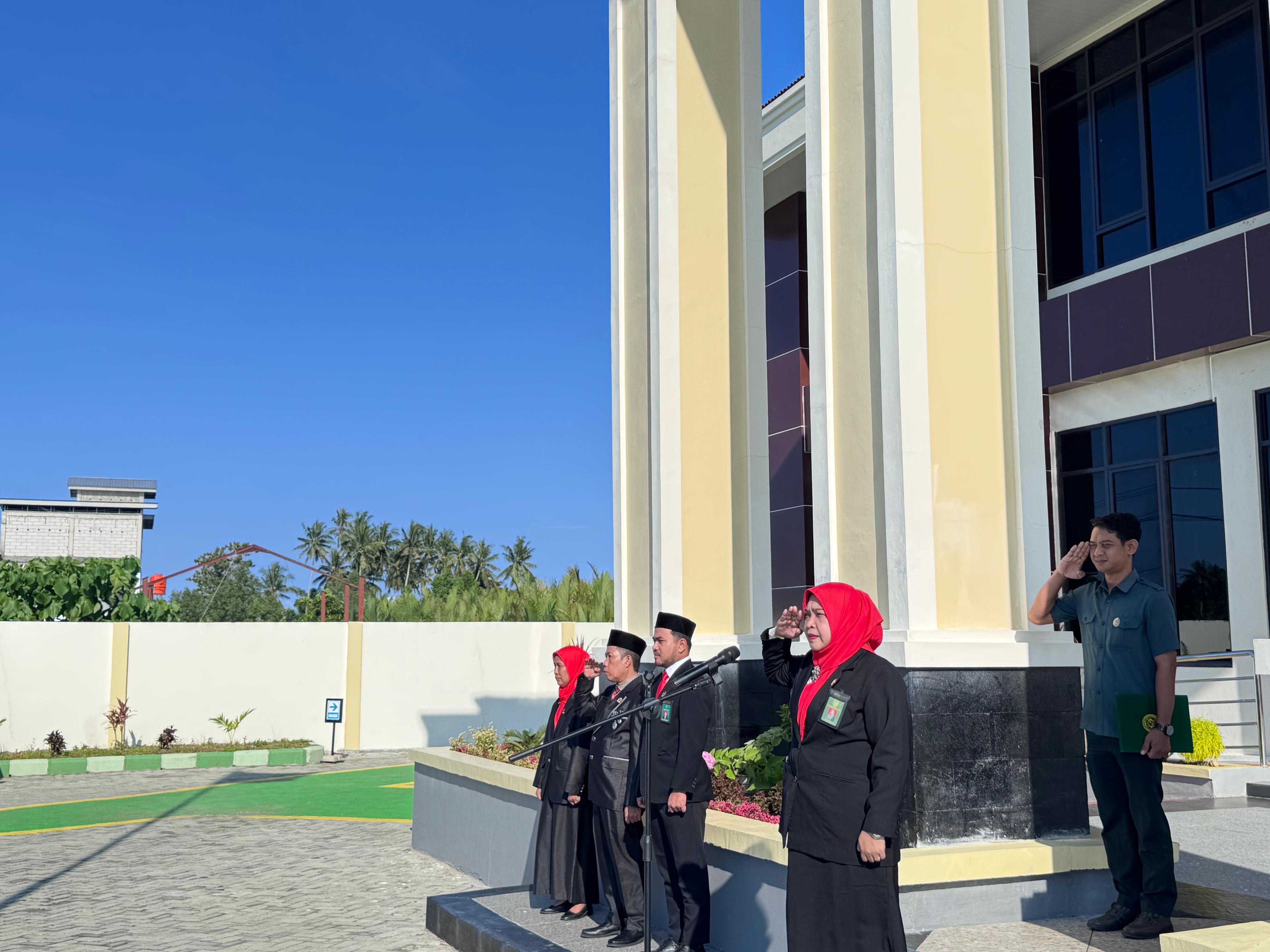 Ketua Pengadilan Agama Pasangkayu, Mazidah, S.Ag., M.H. bertindak sebagai inspektur upacara. dan diikuti Seluruh jajaran hakim, pejabat struktural dan fungsional, serta pegawai Pengadilan Agama Pasangkayu turut hadir mengenakan seragam Korpri dengan sikap tertib dan penuh penghormatan terhadap nilai-nilai kebangsaan.