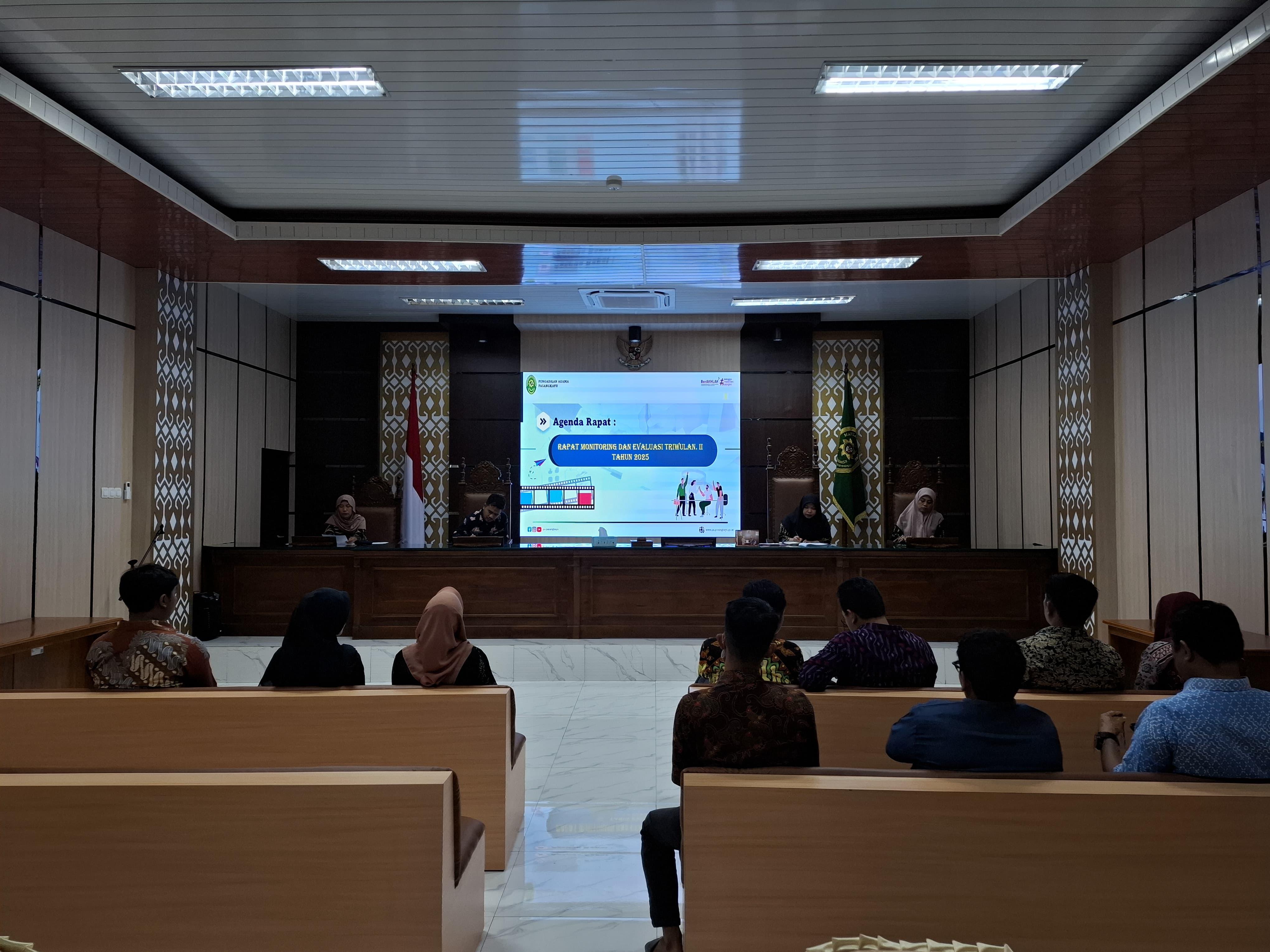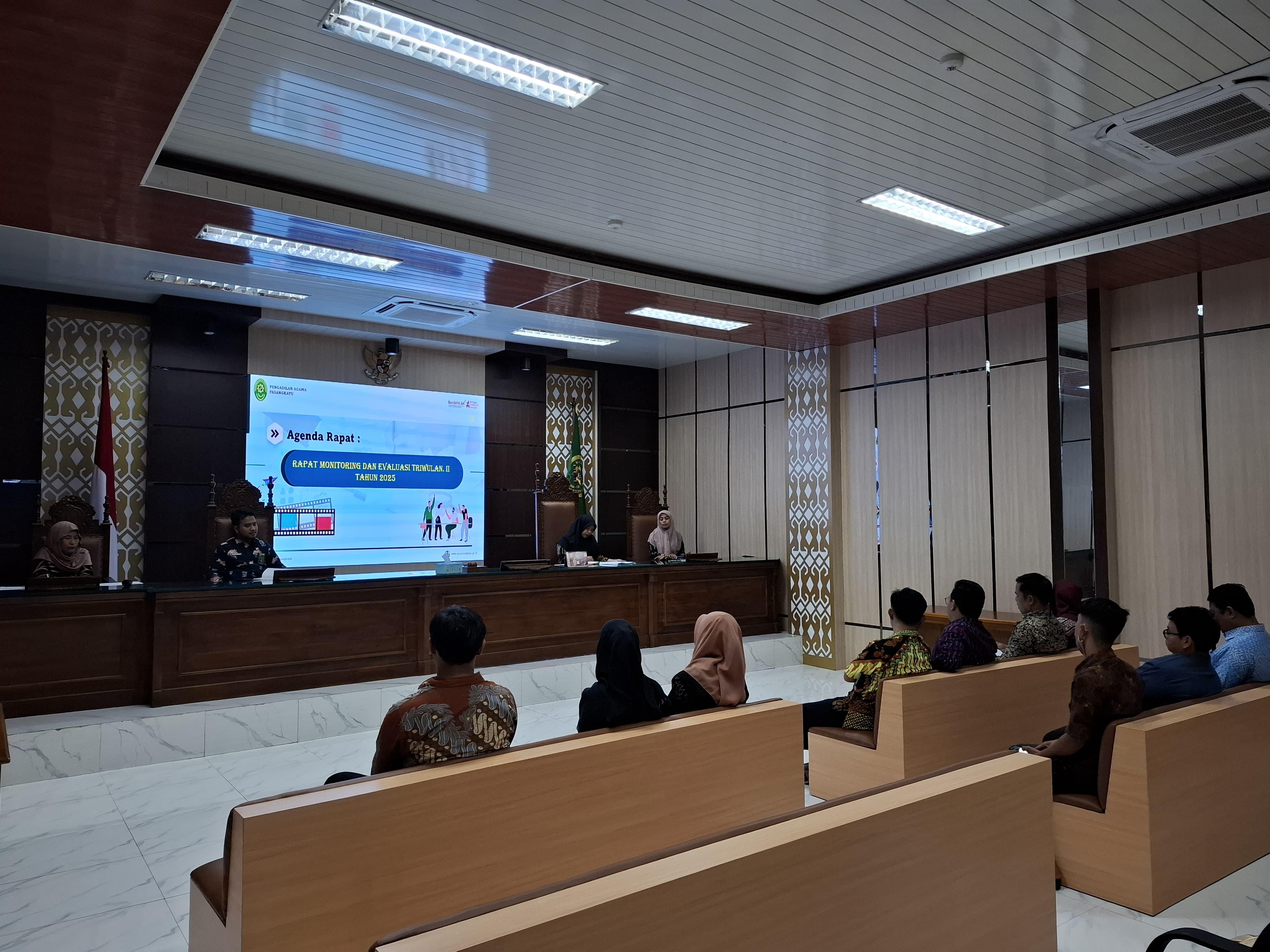 Dalam upaya memastikan efektivitas kinerja serta meningkatkan kualitas layanan kepada masyarakat, Pengadilan Agama Pasangkayu menggelar Rapat Monitoring dan Evaluasi (Monev) Triwulan II Tahun 2025 di ruang sidang utama. Kegiatan ini dipimpin langsung oleh Ketua Pengadilan Agama Pasangkayu, Mazidah, S.Ag., M.H. dan dihadiri oleh seluruh aparatur peradilan, mulai dari hakim, panitera, sekretaris, Pejabat Struktural dan Pejabat Fungsional, hingga staf Pengadilan.
