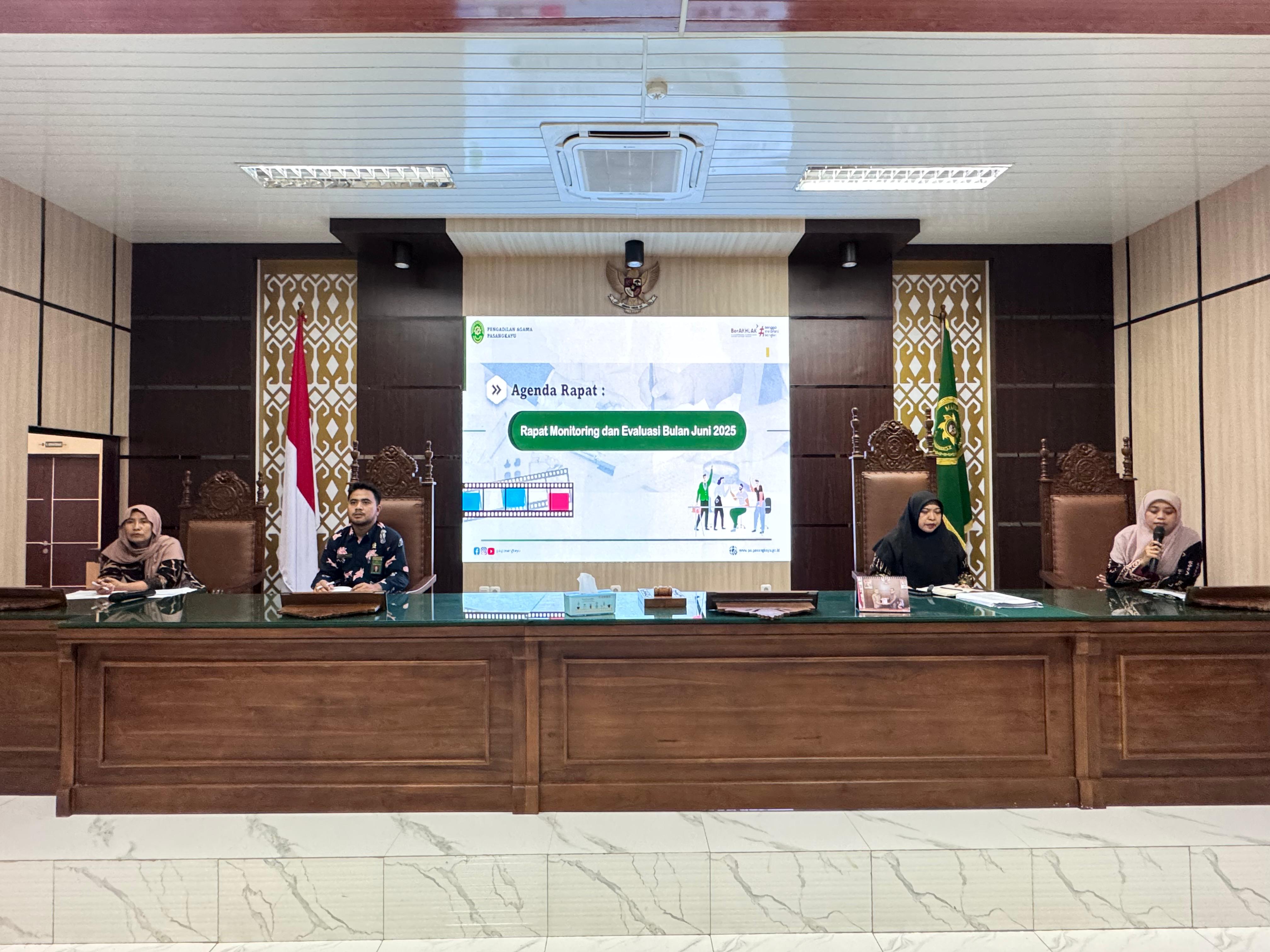 Pengadilan Agama Pasangkayu mengadakan rapat monitoring dan evaluasi (monev) untuk bulan Juni di ruang rapat Pengadilan Agama Pasangkayu. Rapat ini dihadiri oleh Hakim, Panitera, Sekretaris dan staf pengadilan, serta dipimpin oleh Ketua Pengadilan Agama Pasangkayu, Ibu Mazidah, S.Ag., M.H.