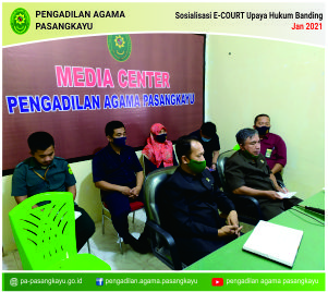Kamis 28 Januari 2021 pukul 14.00 wita bertempat di ruang Media Center Panitera, Panitera Muda Hukum, Panitera Muda Permohonan, Panitera Muda Gugatan, Panitera Pengganti dan Staf IT Pengadilan Agama Pasangkayu mengikuti Sosialisasi Implementasi e-Court Upaya Hukum Banding di lingkungan Pengadilan Tinggi Agama Makasar melalui zoom meeting dengan narasumber dari Tim Develop SIPP Mahkamah Agung R.I., Hendra Dwi Prasetyo.