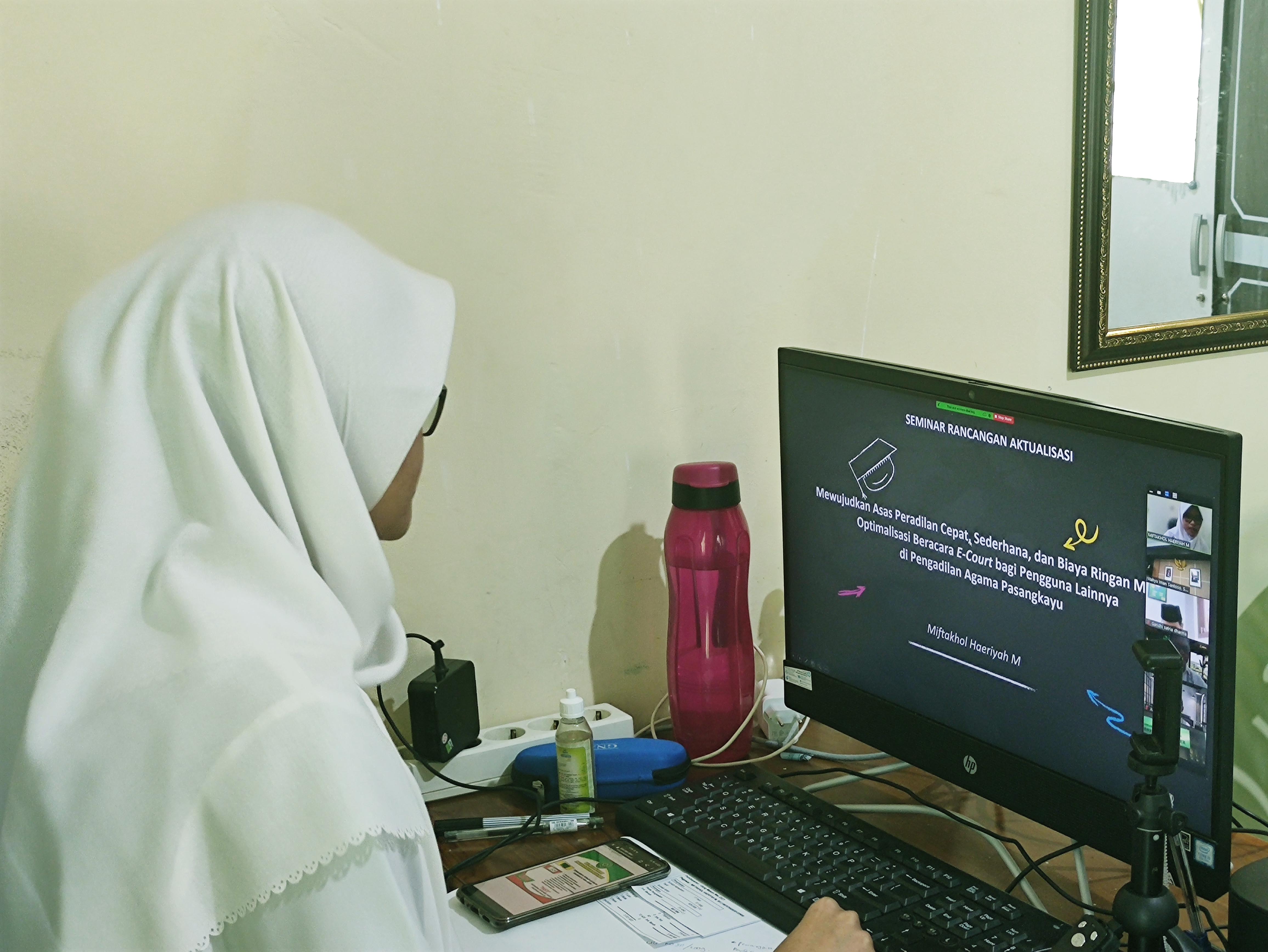 Kemudian pada tanggal 03 Juni 2021, CPNS Miftakhol Haeriyah, S.H. yang tergabung dalam Angkatan IX Kelompok III melaksanakan Seminar Rancangan Aktualisasi dengan Judul “Mewujudkan Asas Peradilan Cepat, Sederhana, dan Biaya Ringan melalui Optimalisasi Beracara E-Court Bagi Pengguna Lainnya di Pengadilan Agama Pasangkayu” dilatarbelakangi oleh adanya isu Tingginya Panjar Biaya Berperkara di Pengadilan Agama Pasangkayu. Isu ini diperoleh dari Laporan Hasil Survey Kepuasan Masyarakat Pengadilan Agama Pasangkayu Tahun 2020 yang menunjukkan bahwa untuk unsur pelayanan Kewajaran Biaya/Tarif dalam Pelayanan memperoleh nilai sebesar 2,77 dengan Mutu Pelayanan Kurang Baik.