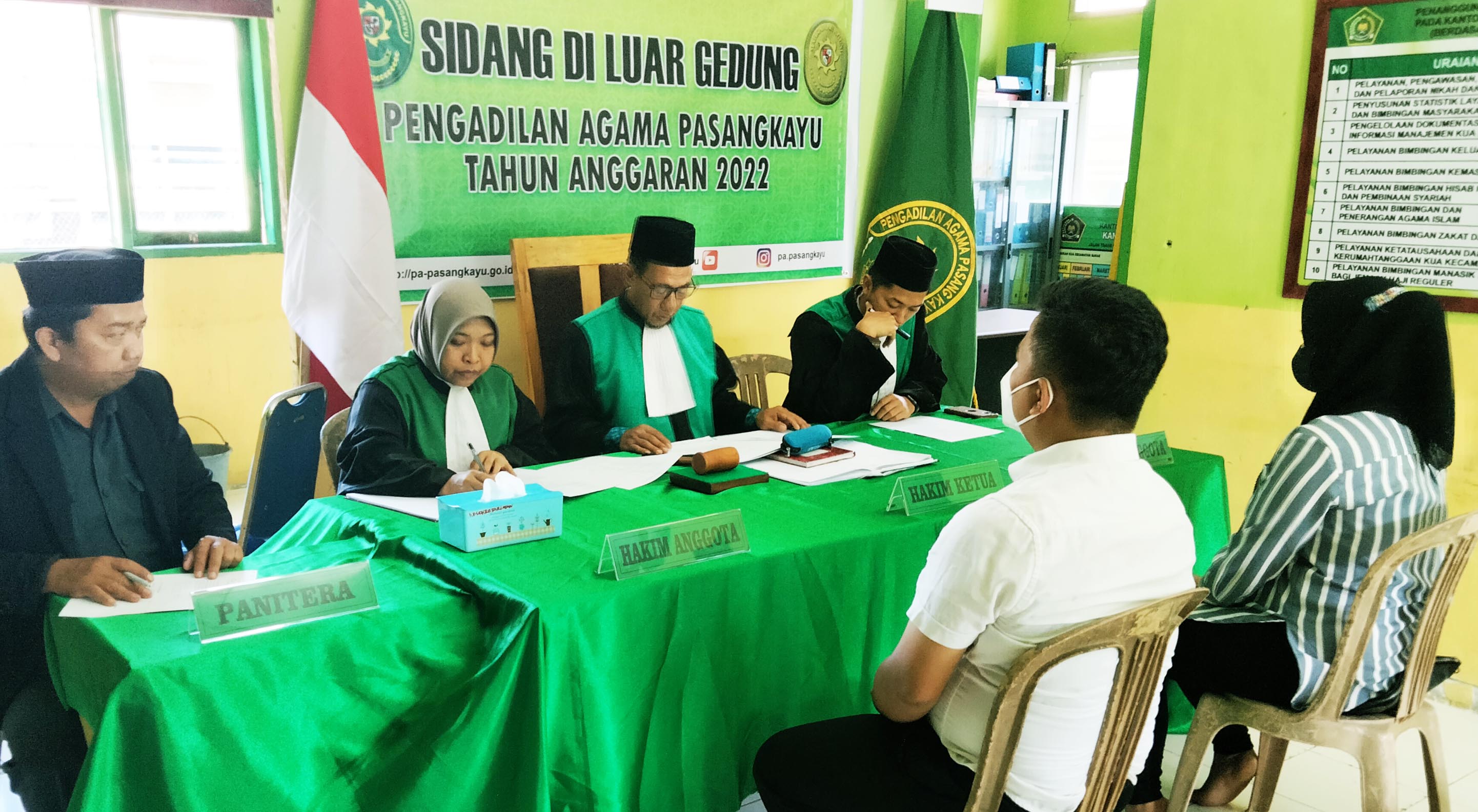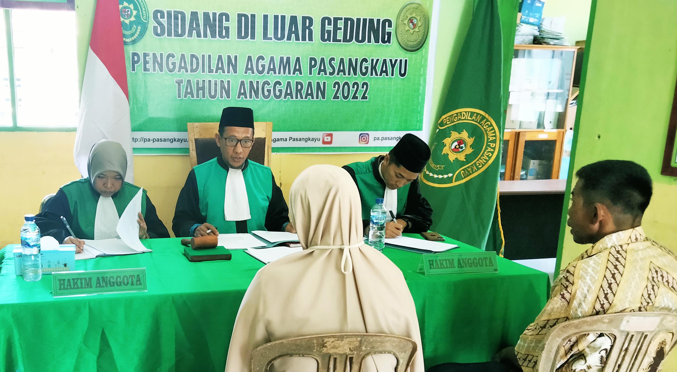 Jum’at (04/02/2022). Pengadilan Agama Pasangkayu memulai pelaksanaan Sidang di Luar Gedung yang pertama pada tahun 2022. Gelaran perdana sidang di luar gedung atau sidang keliling tahun ini dilaksanakan di Kantor Urusan Agama (KUA) Kecamatan Baras yang beralamat di Jl. Trans Sulawesi, Lingkungan Pantai Batu, Kecamatan Baras, Kabupaten Pasangkayu. Kecamatan Baras sendiri merupakan salah satu wilayah yurisdiksi Pengadilan Agama Pasangkayu yang terjauh dan menaungi atas 1 Kelurahan serta 6 Desa. Sidang di luar gedung ini merupakan salah satu pelayanan prima yang digalakkan oleh Mahkamah Agung sebagai salah satu upaya untuk meningkatkan mutu pelayanan kepada masyarakat pencari keadilan serta mengimplementasikan asas peradilan yakni Sederhana, Cepat dan Biaya Ringan.