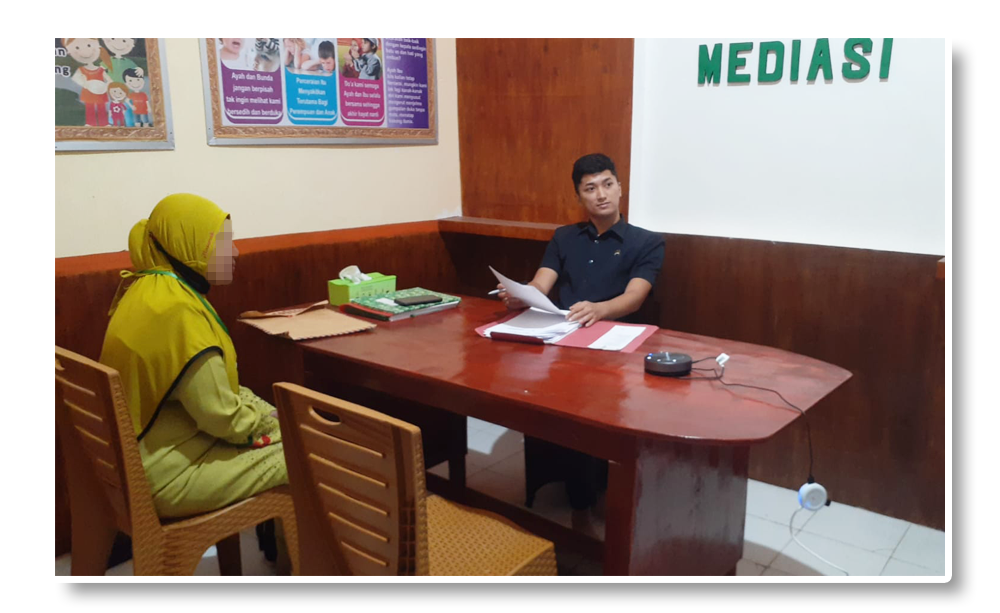 Selasa (10/01). Hakim Mediator Pengadilan Agama Pasangkayu YM. bapak Muh. Irfan, S.H., laksanakan mediasi secara virtual dari Ruang Mediasi PA Pasangkayu yang terselenggara atas kerjasama dengan Rumah Tahanan Negara Kelas IIb Pasangkayu. Dalam proses mediasi perkara cerai gugat nomor 2/Pdt.G/2023/PA.Pky, salah satu pihak tidak dapat hadir secara langusng dikarenakan sedang berada di dalam Rutan. Sehingga untuk memberikan pelayanan yang prima, PA Pasangkayu dan Rumah Tahanan Negara Kelas IIb Pasangkayu memfasilitasi pelaksanaan mediasi secara virtual melalui komunikasi audio visual jarak jauh.