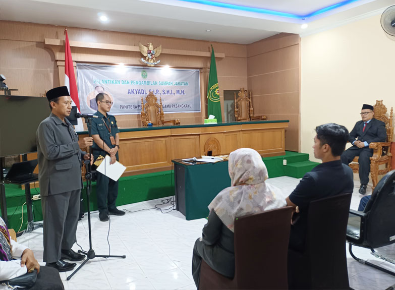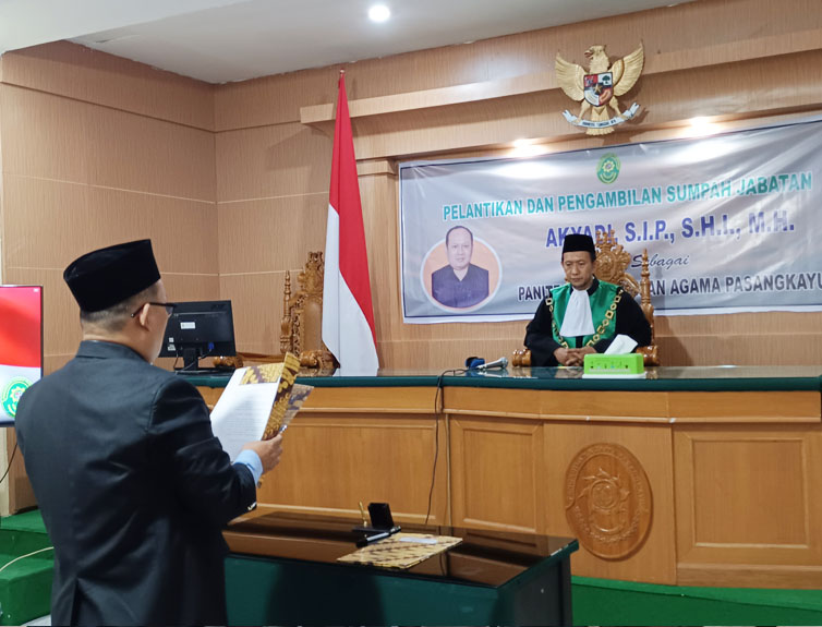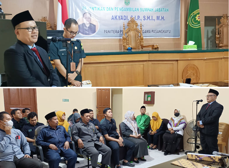 Pasangkayu (07/12). Berdasarkan surat dari Direktorat Jenderal Badan Peradilan Agama (Ditjen Badilag) nomor : 4897/DjA/KP.04.6/11/2022 perihal Hasil Rapat Tim Badan Pertimbangan Jabatan dan Kepangkatan Tenaga Teknis Kepaniteraan dan Kejurusitaan di Lingkungan Peradilan Agama, berdasarkan hal tersebut, Pengadilan Agama Pasangkayu melaksanakan Pelantikan dan Pengambilan Sumpah Jabatan Panitera yakni bapak Akyadi, S.I.P., S.H.I, M.H., yang sebelumnya menjabat sebagai Panitera Muda Hukum Pengadilan Agama Pangkajene.