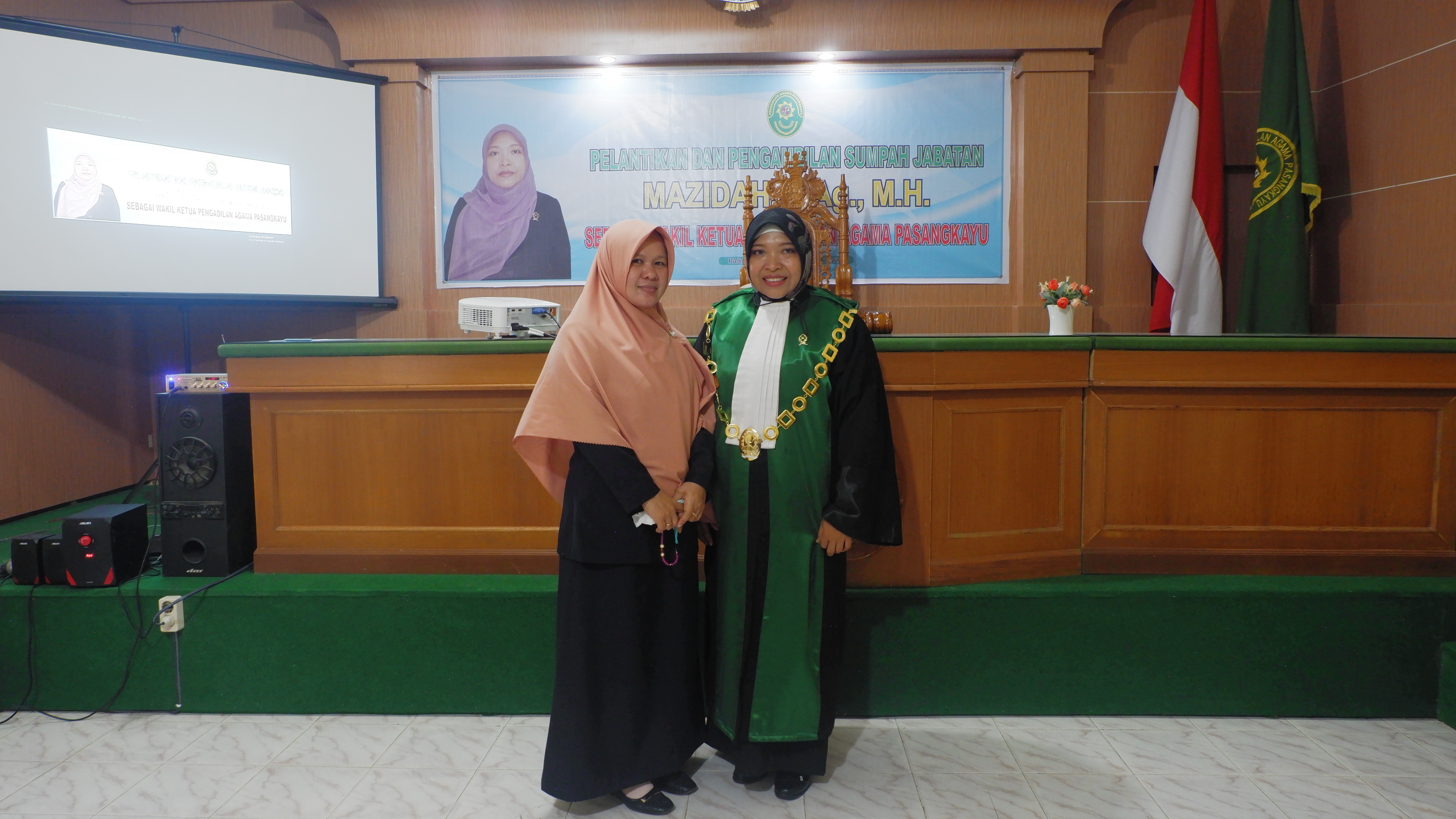 Bertempat di ruang sidang Pengadilan Agama Pasangkayu dilaksanakan Pelantikan dan Pengambilan Sumpah Jabatan Ibu Mazidah, S.Ag., M.H. sebagai Wakil Ketua Pengadilan Agama Pasangkayu sebelumnya menjabat sebagai Hakim Pengadilan Agama Donggala Kelas IB.