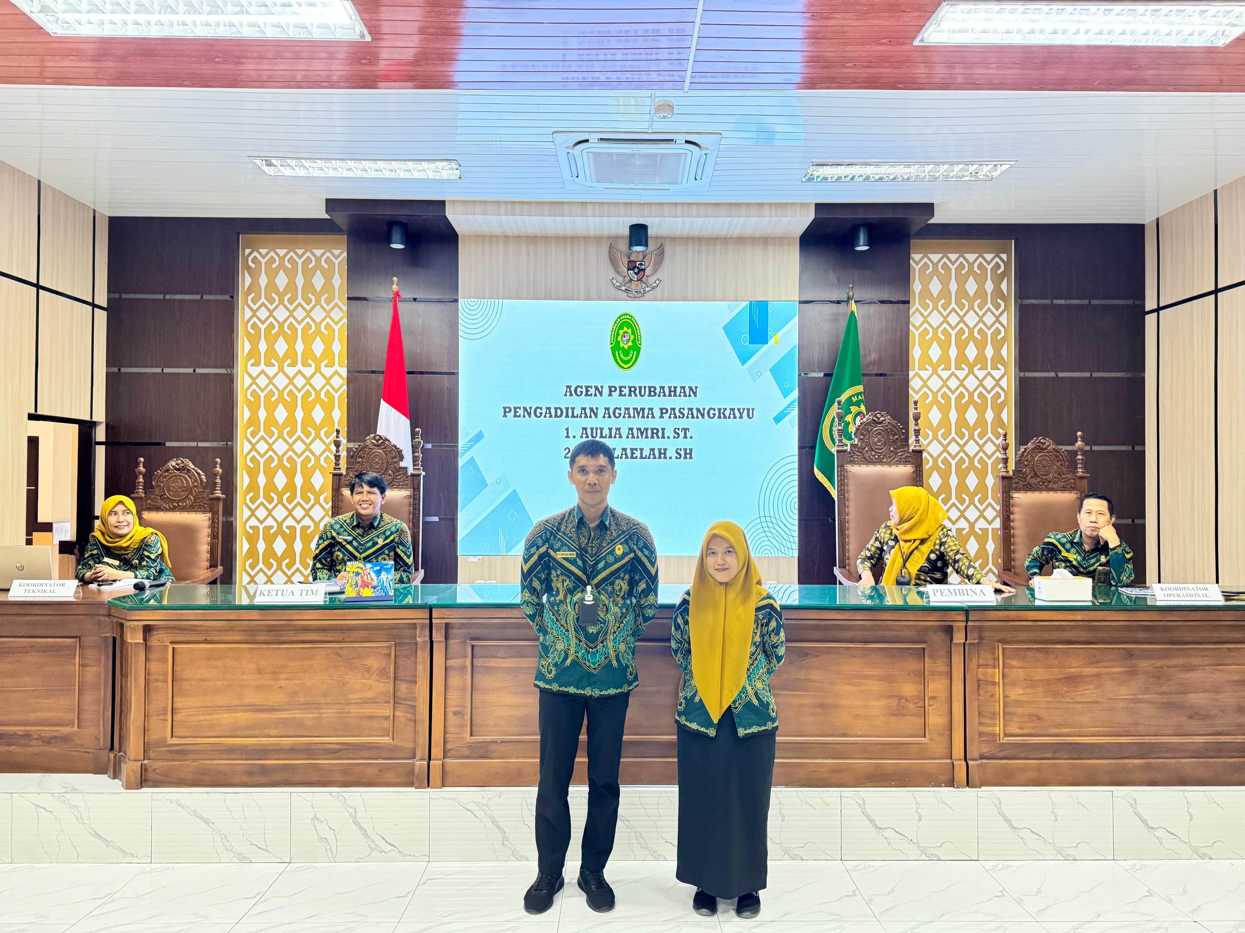Pengadilan Agama Pasangkayu menggelar kegiatan Pemilihan Agen Perubahan Tahun 2026 sebagai bagian dari upaya memperkuat pembangunan Zona Integritas dan mewujudkan budaya kerja yang berintegritas, profesional, dan berorientasi pada pelayanan publik, di lingkungan Pengadilan Agama Pasangkayu.