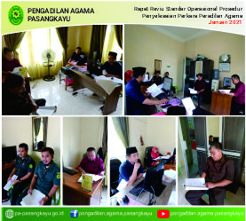Kamis 28 Januari 2021, Pengadilan Agama Pasangkayu menggelar rapat menindaklanjuti Instruksi Direktur Jenderal Badilag Dr. Drs. H. Aco Nur, S.H., M.H. dalam surat nomor : 207/DjA.3/HM.00/1/2021 tanggal 19 Januari 2021 perihal Reviu SOP Penyelesaian Perkara Peradilan Agama.
