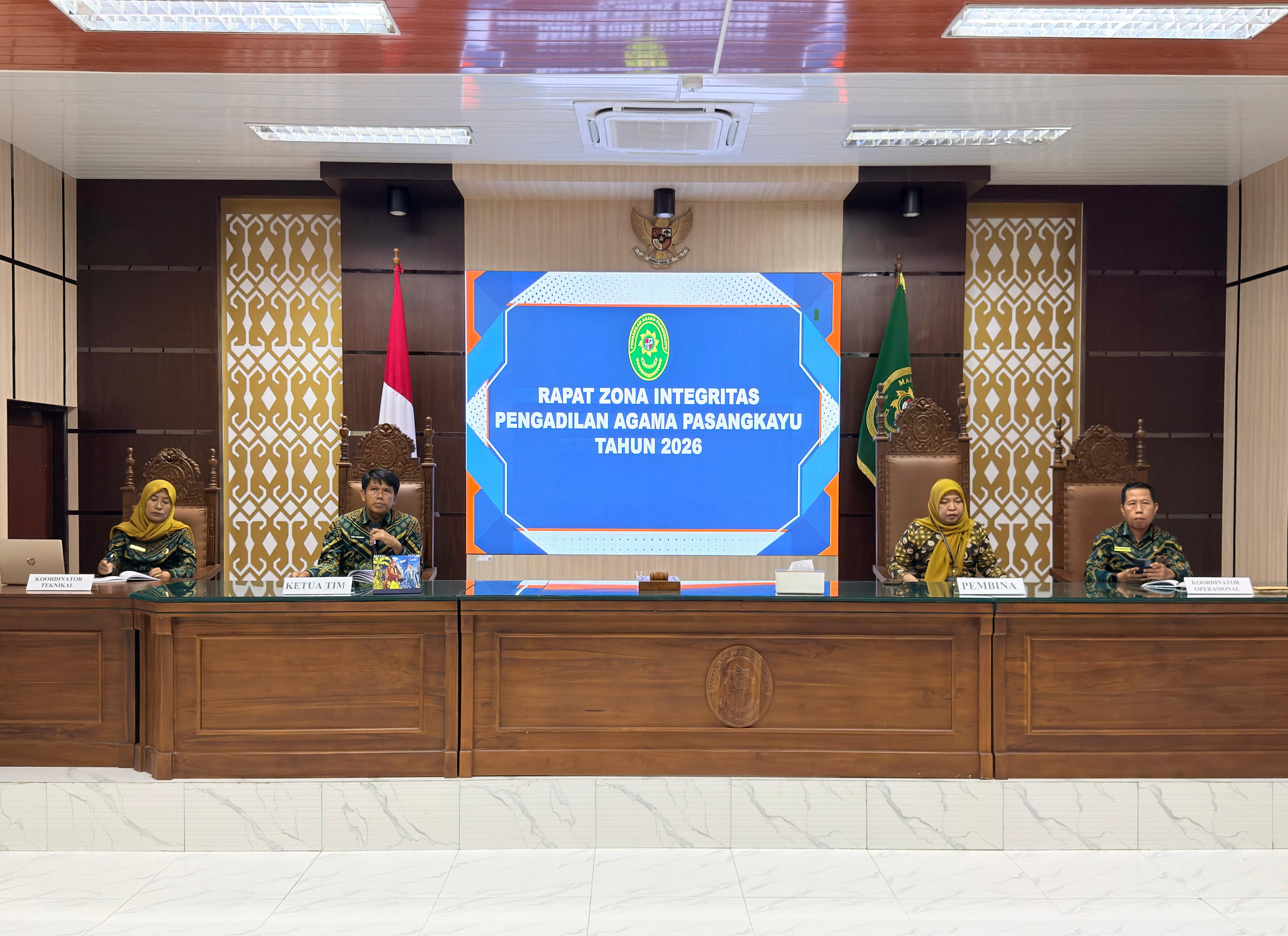 Bertempat di ruang rapat Pengadilan Agama Pasangkayu Pengadilan Agama Pasangkayu menggelar Rapat Zona Integritas (ZI) Tahun 2026 sebagai bentuk komitmen dalam mewujudkan birokrasi yang bersih, transparan, dan melayani.