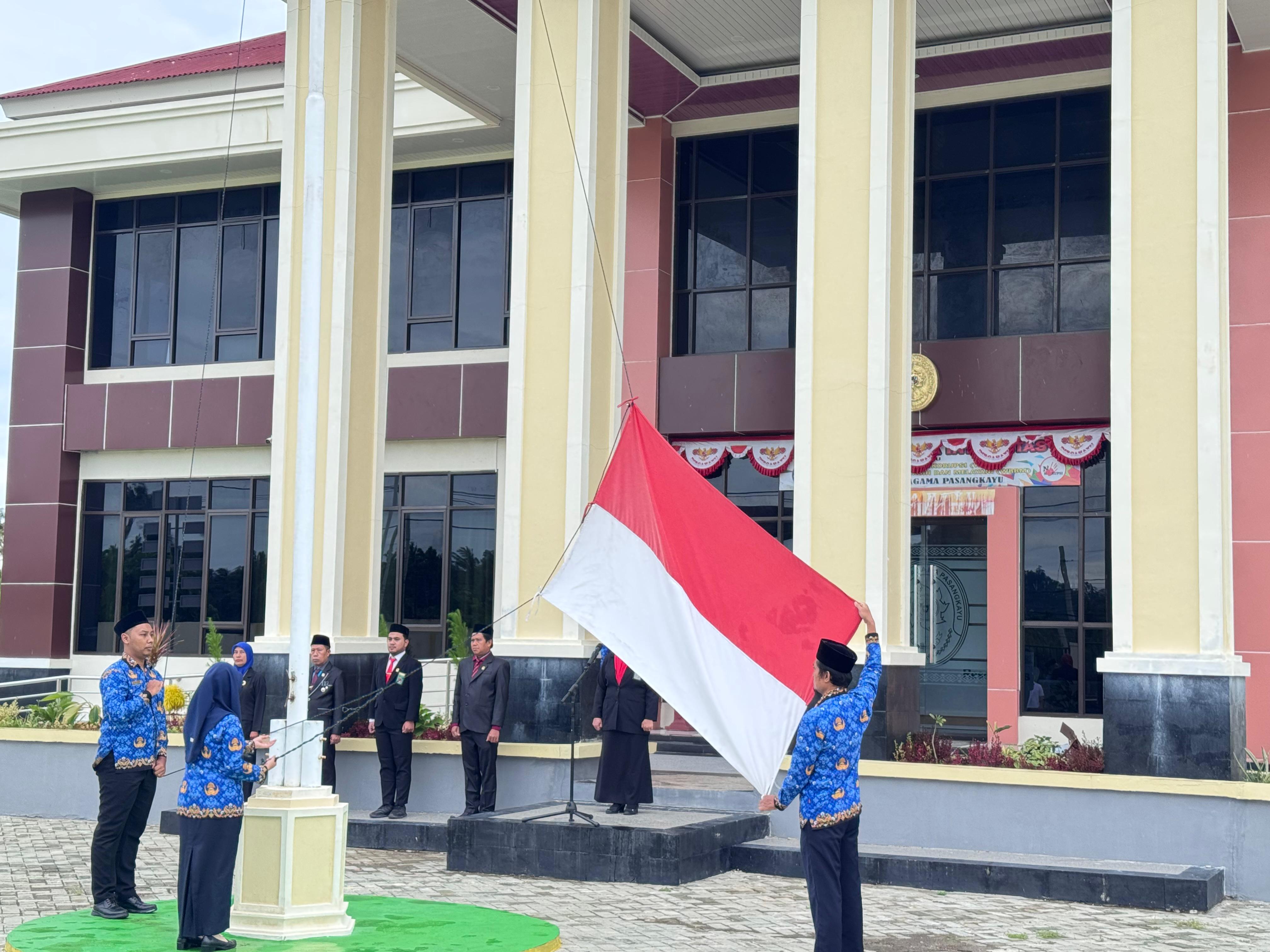 Dalam semangat nasionalisme dan penghormatan kepada jasa para pejuang bangsa, Pengadilan Agama (PA) Pasangkayu menggelar upacara bendera memperingati Hari Pahlawan pada Senin, 10 November 2025, di halaman kantor PA Pasangkayu. Upacara berlangsung khidmat dengan diikuti seluruh aparatur pengadilan, mulai dari pimpinan, hakim, pejabat struktural, fungsional, hingga staf dan PPNPN.
