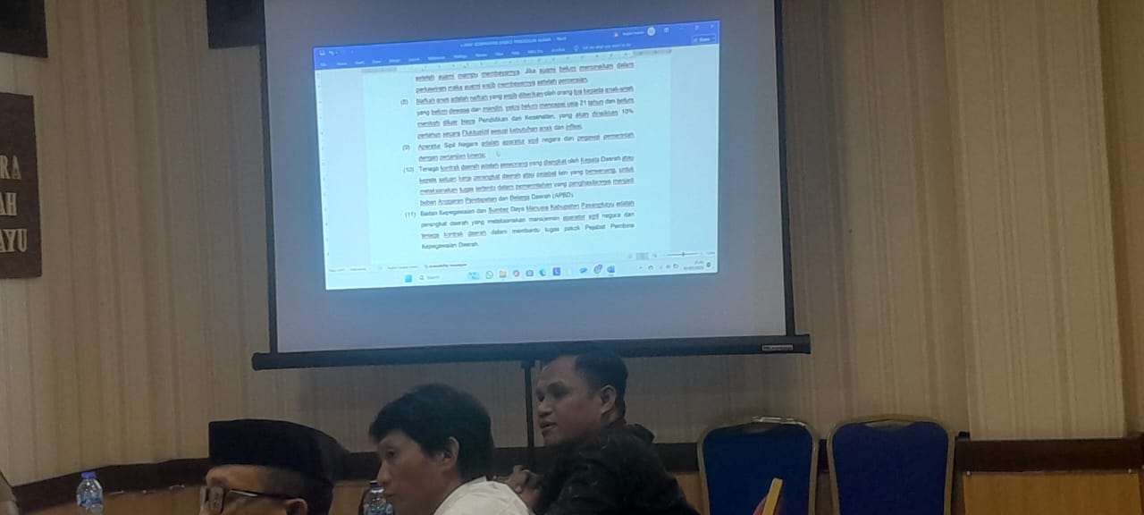 Ketua Pengadilan Agama Pasangkayu Ibu Mazidah, S.Ag., M.H, bersama Panitera Bapak Akyadi, S.I.P., S.H.I., M.H, menghadiri Undangan rapat pembahasan rancangan Nota Kesepahaman Sinergi, dalam rangka rencana Kerja Sama Antara Pengadilan Agama Pasangkayu dengan Pemerintah Daerah Kabupaten Pasangkayu tentang Mekanisme Pelaksanaan Putusan Pengadilan Agama tentang Pemenuhan Hak Mantan Istri dan Hak Anak Pasca Perceraian. Rapat diPimpin Oleh Asisten I dan dihadiri Kepala Bagian Hukum Sekretariat Daerah bersama jajarannya.