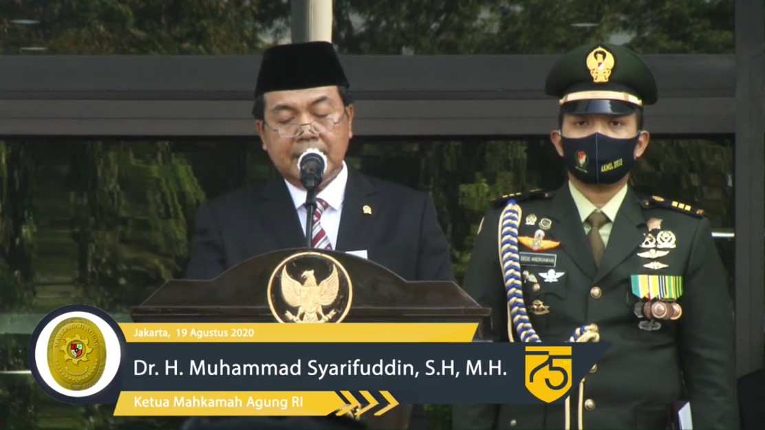 Peringatan HUT Ke-75 Mahkamah Agung RI ini mengambil tema Optimalisasi Peradilan Moderna Yang Berkelanjutan Merespon Pandemi Covid-19 dengan Pembina Upacara Yang Mulia Ketua Mahkamah Agung RI Dr. H. Muhammad Syarifuddin, S.H., M.H.